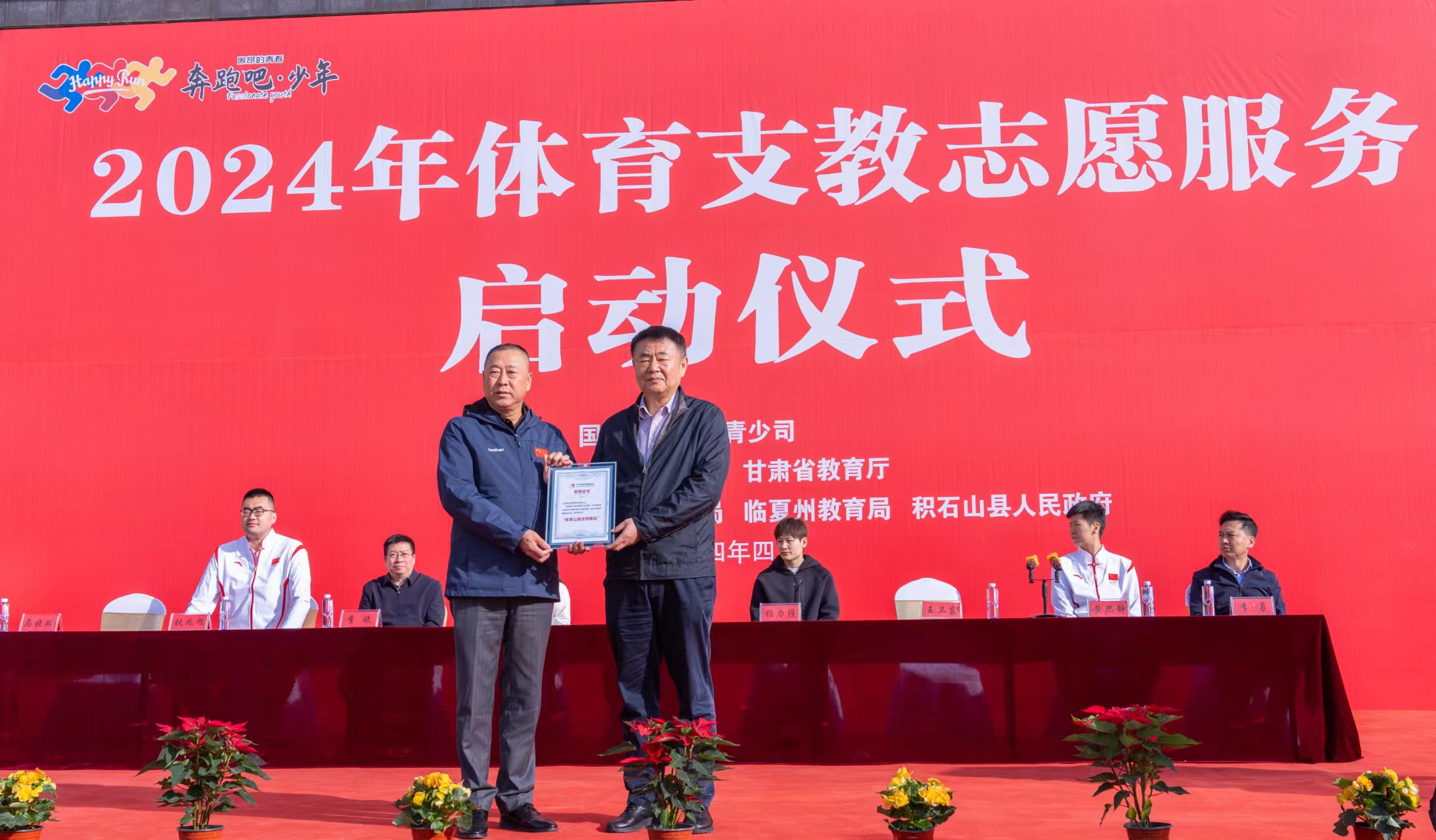 【概要描述】4月23至24日,体育支教志愿服务工作培训会、座谈会、体育明星进校园活动暨2024年体育支教志愿服务工作启动仪式,在甘肃省兰州市城关区东岗西路555号海悦温德姆酒店举行。△ 2024年体育支教志愿服务启动仪式场景 体育总局青少司领导;山西、内蒙古、江西、四川等9省(区)体育局青少处负责同志、具体负责同志和本省牵头高校相关部门负责人;中华全国体育基金会、武汉体育学院相关部门负责同志;北京体育大学、上