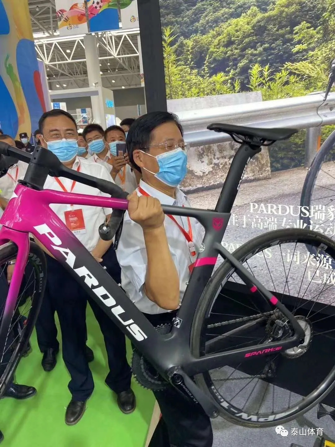 随后,山东省副省长孙继业一行在好博集团常务副总裁卞国峰的陪同下来到好博体育所在场馆进行详细考察,对于好博瑞豹碳纤维自行车、好博体育工程等产品与项目进行深入了解。期间,孙继业副省长饶有兴致的对于好博瑞豹进行详细了解,特别关注获得"中国优秀工业设计奖金奖"的好博瑞豹全碳变速互换计时车产品的具体情况,并亲自单手提起具有奥运赛场征战经验的碳纤维自行车。他表示:"山东省委省政府将积极推动体育产业列入我省的支柱产业,鼓励企业制定长期发展战略规划,通过打造体育产业龙头企业,形成一个迅速爆发的体育产业生态。期待好博集团充分发挥自身国际资源、科技创新、标准制定等核心优势,不断做大做强,让山东体育产业的优势地位凸显的淋漓尽致,形成山东体育产业集群。"